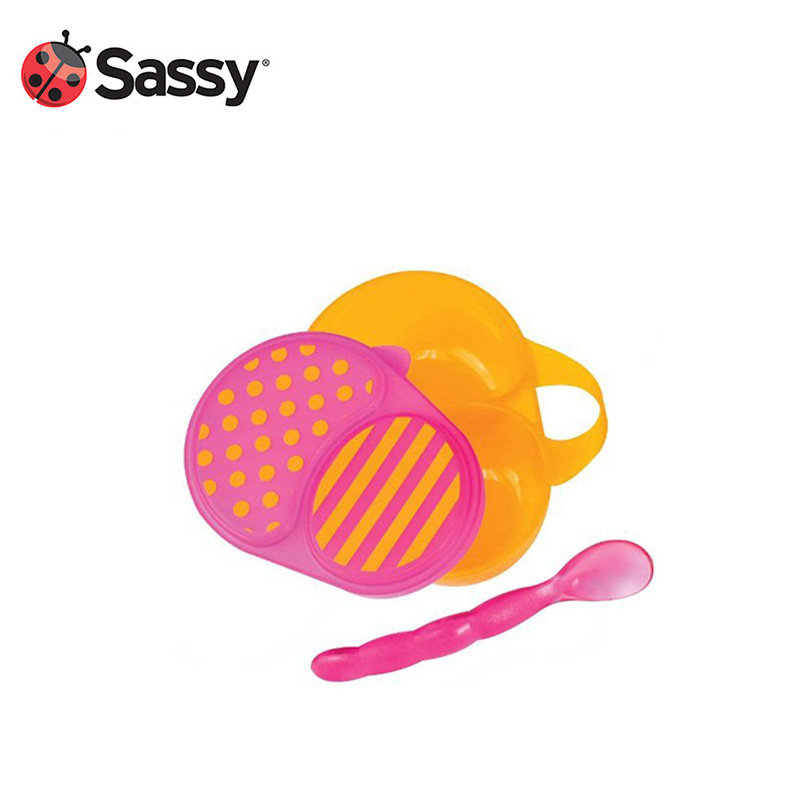 美国Sassy 婴儿餐具套装宝宝碗勺套装儿童辅食碗带盖不含BPA