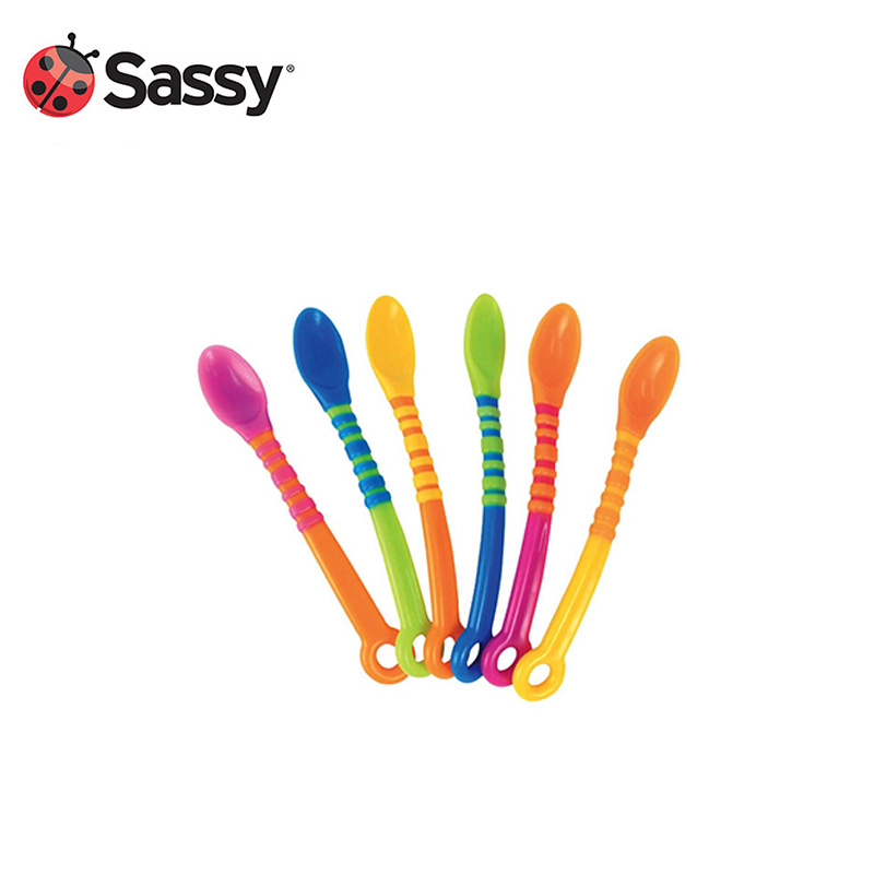 美国Sassy婴幼儿餐具彩色长柄彩色软头勺辅食勺不含BPA -6个装