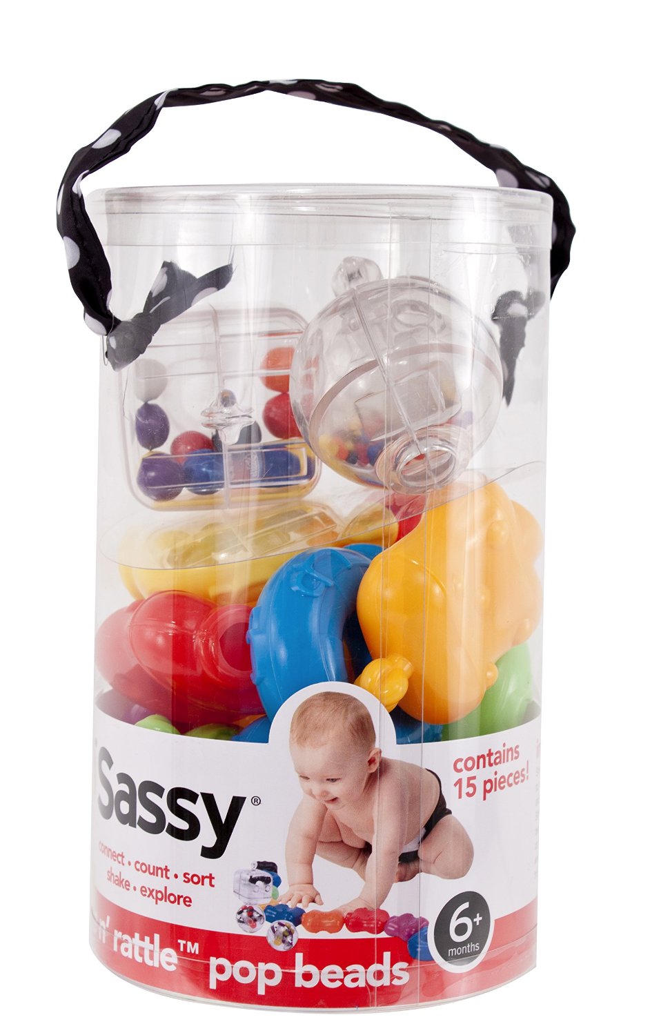 美国Sassy 彩色积木 响珠玩具 宝宝益智拼插塑料积木玩具