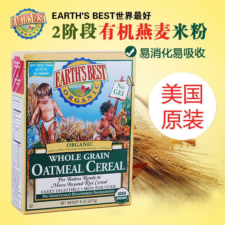 美国进口Earth's Best地球世界最好2段二段有机燕麦宝宝婴儿米粉