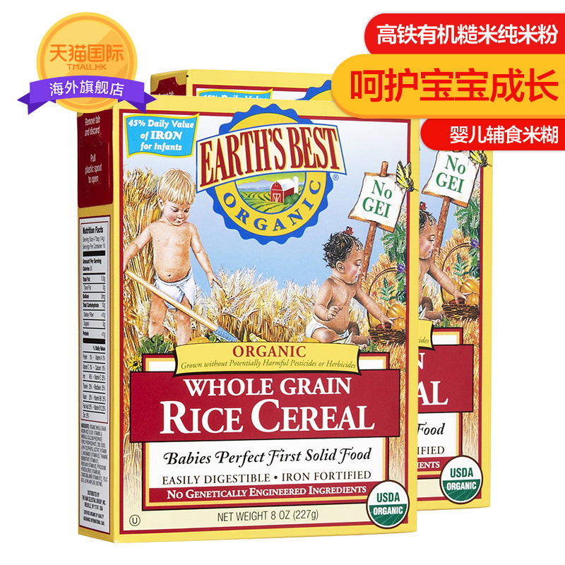 美国Earth's Best地球最好 有机糙米米粉 1段 227g*2盒