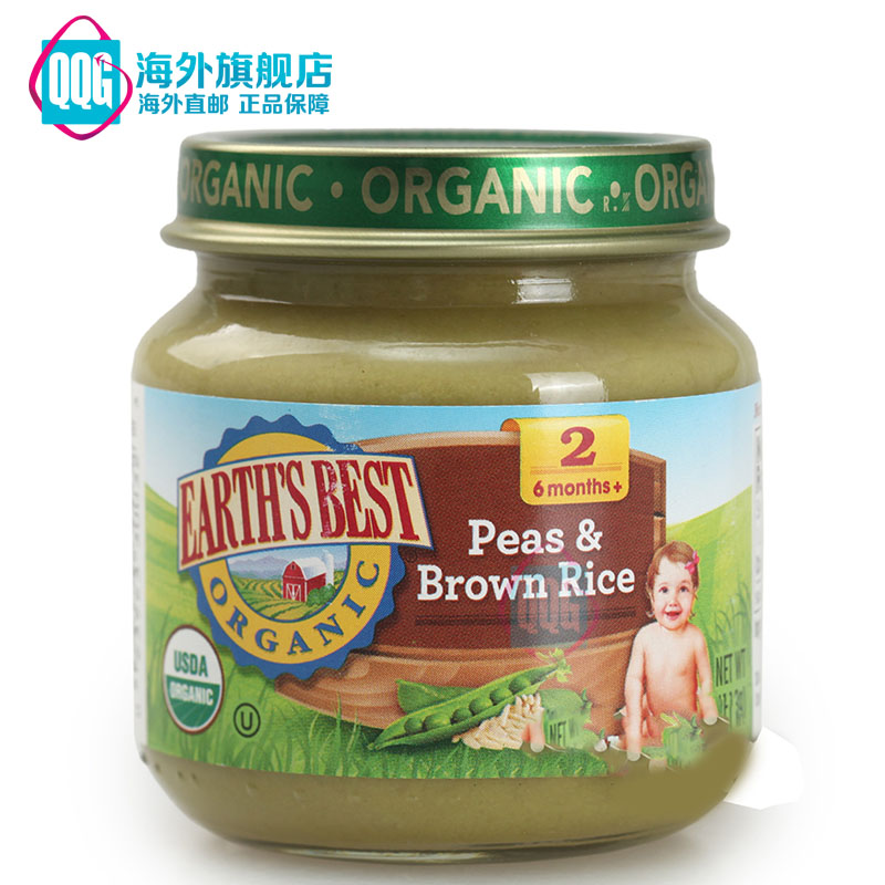 美国直邮 Earth's Best 有机豌豆糙米果泥2段二段 113g