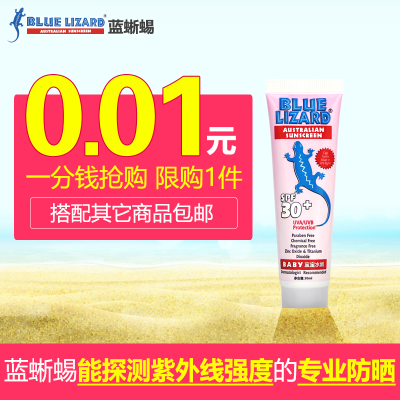 Blue Lizard/蓝蜥蜴宝宝水嫩物理防晒霜spf30+ 30ml儿童无刺激防