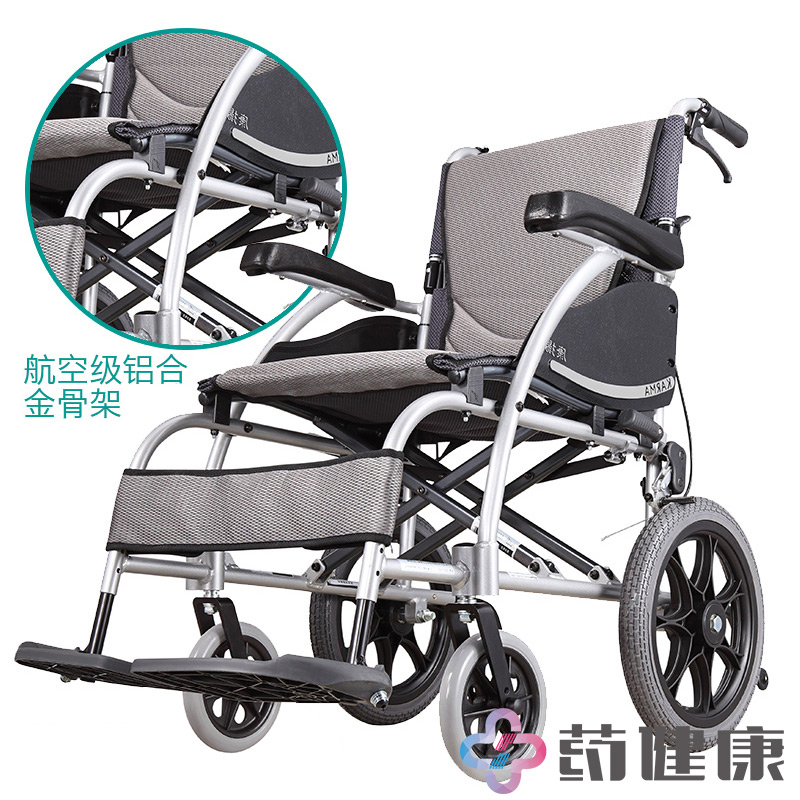 康扬轮椅KM-3530折叠 轻便铝合金便携老人轮椅 残疾人手推代步车