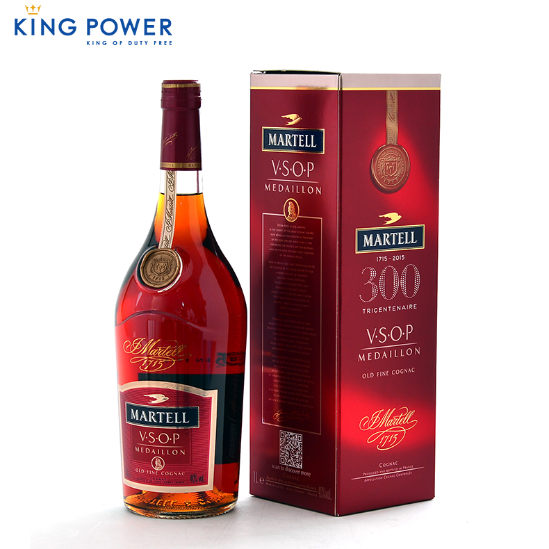 王权免税正品Martell VSOP马爹利金牌干邑40度 1000ml