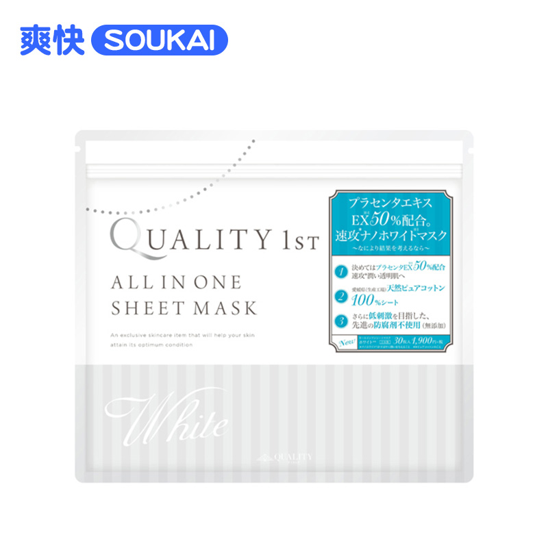 quality first多效合一白皙面膜贴30片 胎盘素滋养嫩肤男女士正品