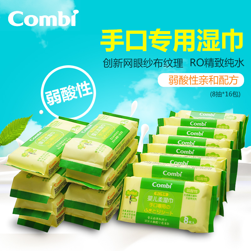 的热门产品combi康贝手口专用湿巾便携婴儿湿巾宝宝柔湿巾湿纸巾8抽*16连包