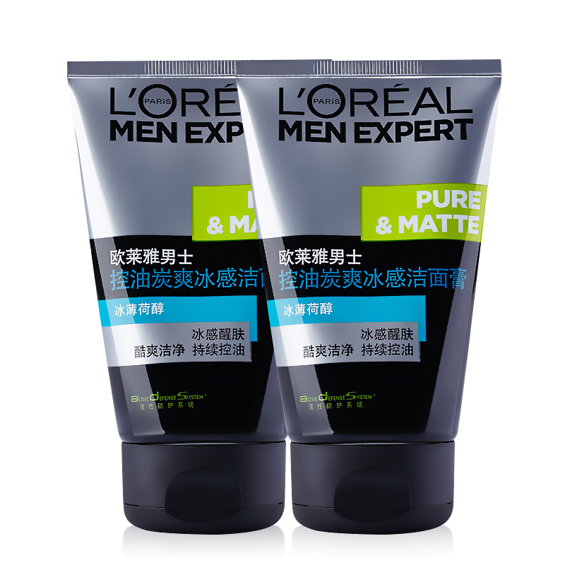 欧莱雅男士洗面奶 控油冰感洁面膏100ml*2 控油深层清洁补水保湿