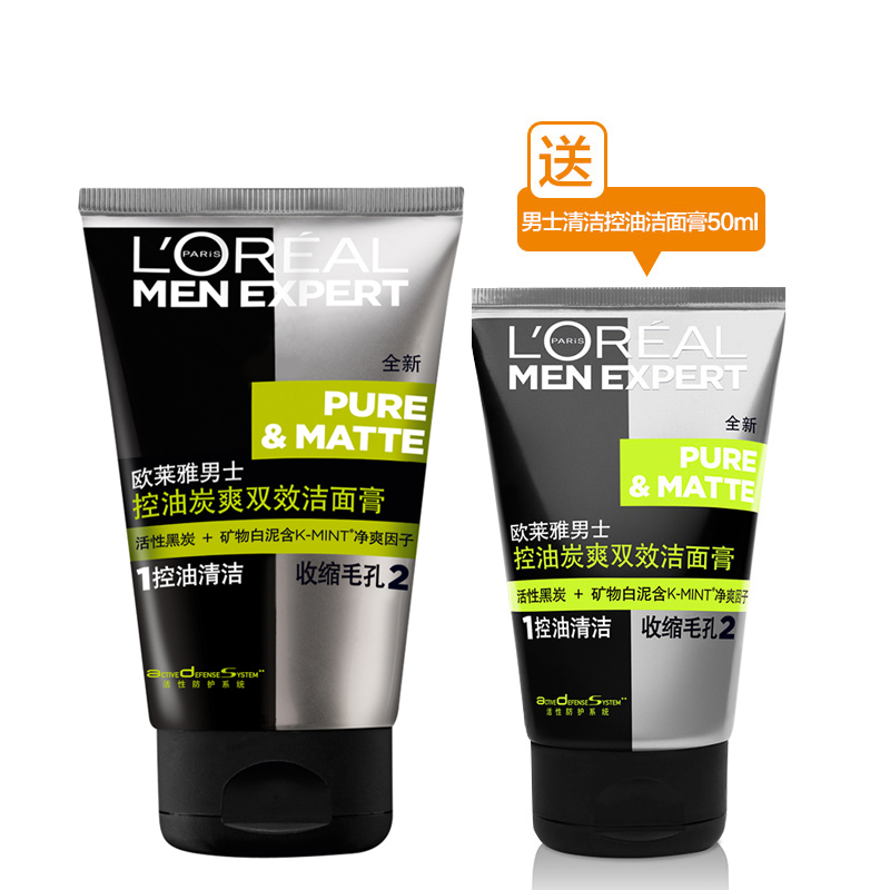 欧莱雅男士洗面奶 控油炭爽双效洁面膏乳 深层清洁祛痘去黑头保湿