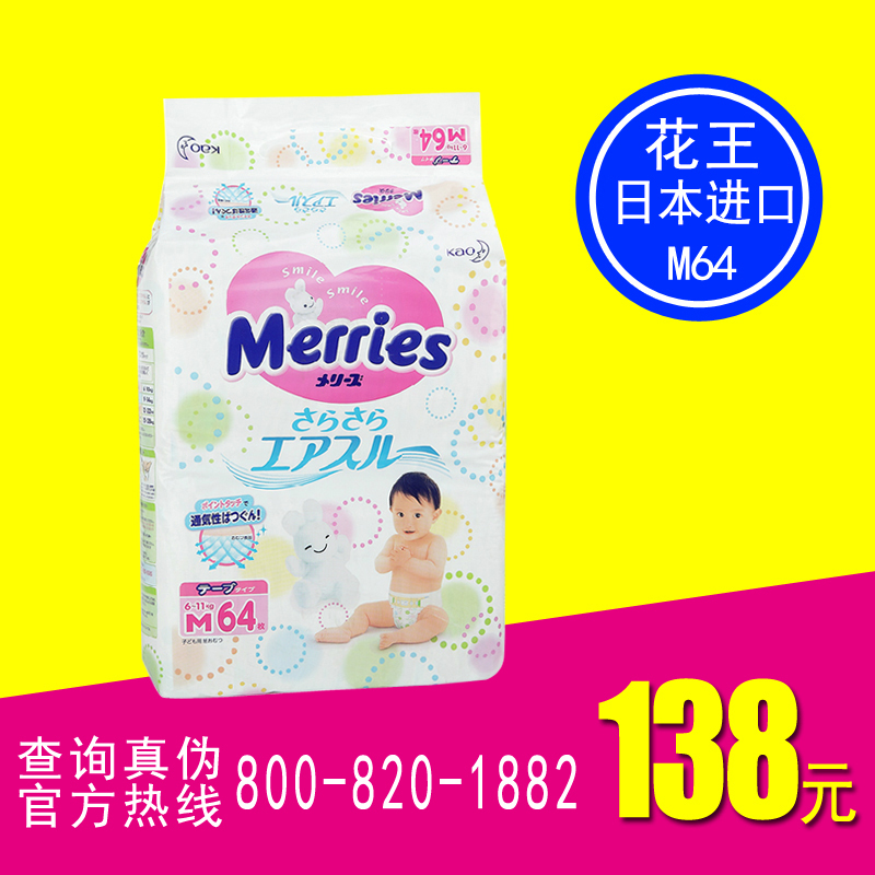 【正品行货】日本原装进口花王 妙而舒 纸尿裤 中号尿不湿M64片