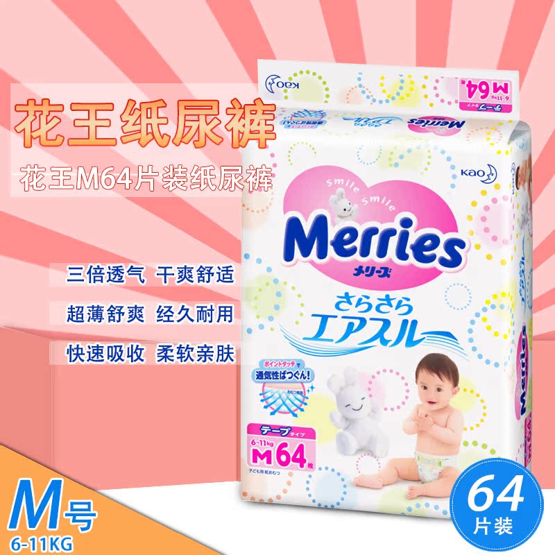 日本花王纸尿裤薄 妙而舒婴儿尿不湿宝宝新生儿尿布湿M64非拉拉裤