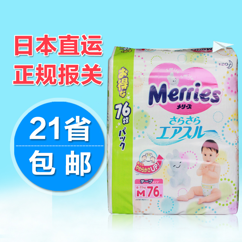 全国21省包邮 日本原装Merries花王纸尿裤尿不湿加量M76片