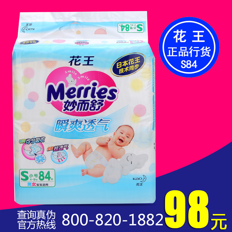 花王妙而舒尿不湿 瞬爽透气婴儿纸尿裤/纸尿片S(小号)84片正品
