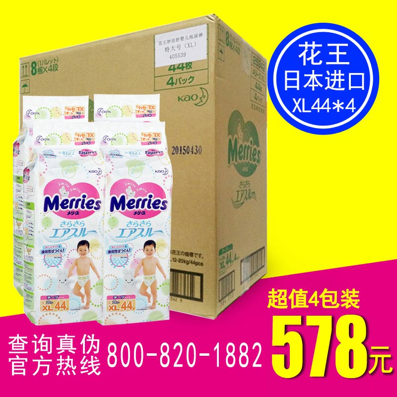 【正品行货】日本原装进口花王纸尿裤 特大号尿不湿XL44片*4包