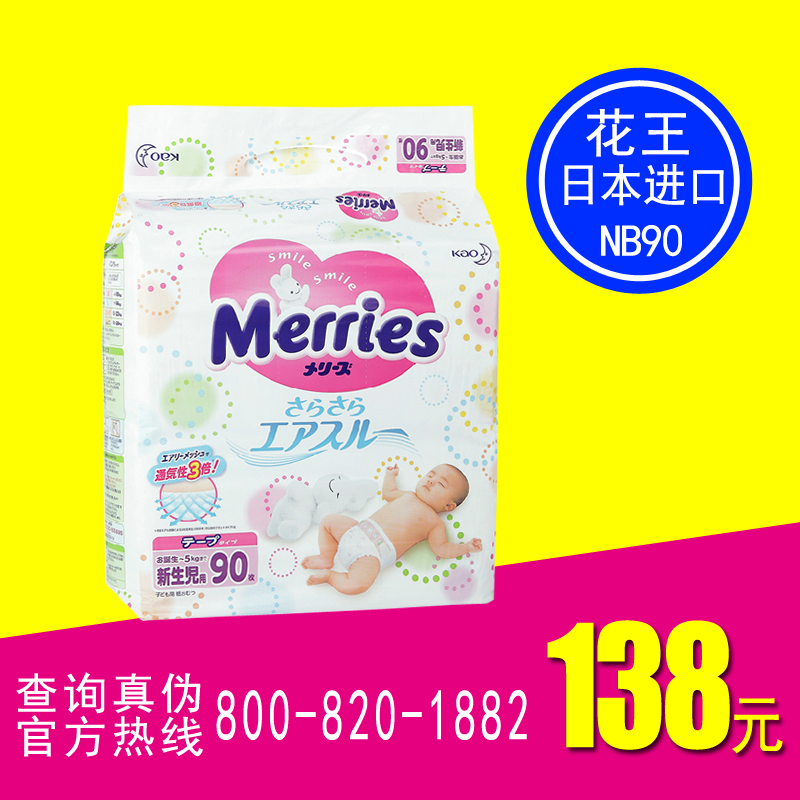 【红孩子母婴】花王(Merries)妙而舒纸尿裤新生儿尿不湿NB90片