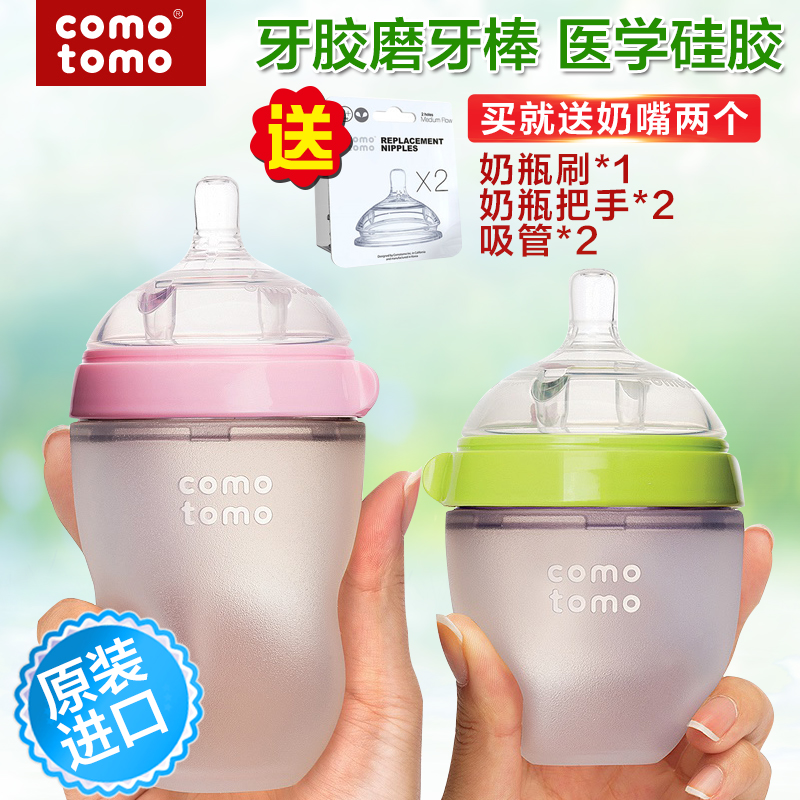 材质:硅胶 奶瓶是否带柄:不带柄 口径大小:宽口径 形状:圆弧形 品牌:como tomo/可么多么 系列:Comotomo可么多么硅胶奶瓶(套装) 颜色分类:250ml+250ml一粉一绿.150ml+250ml粉绿各一(套装) 容量:150ml+250ml 250ml+250ml 查看全文