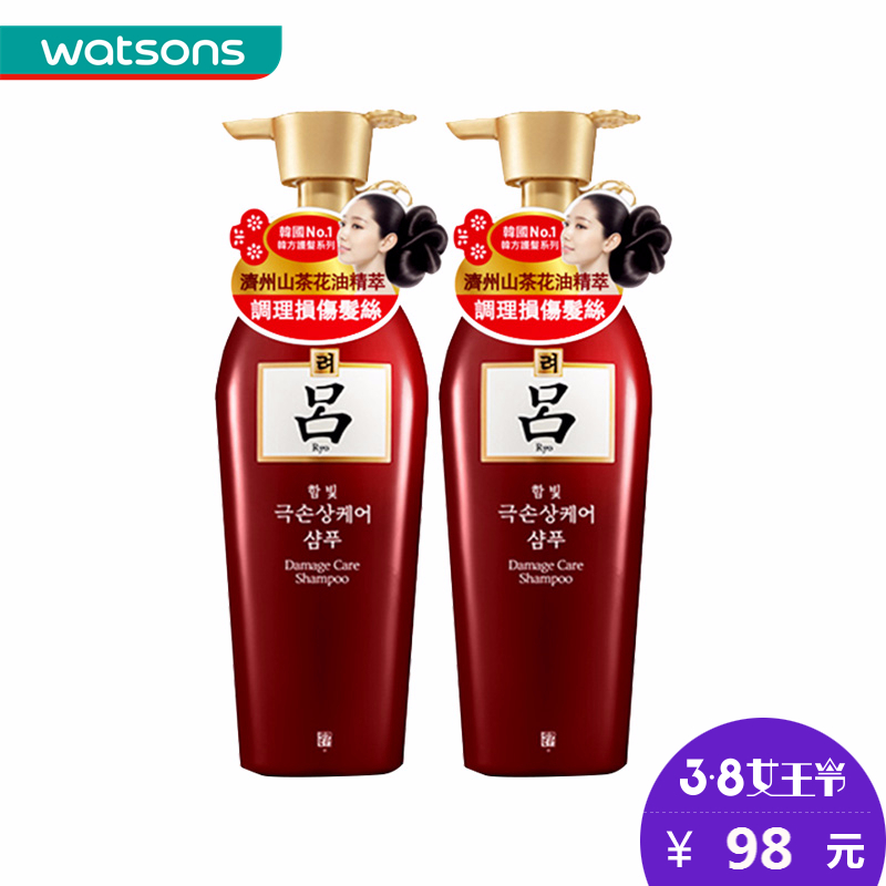 【屈臣氏海外】吕韩方修护洗发水400ml*2 受损发质适用 红吕 套装