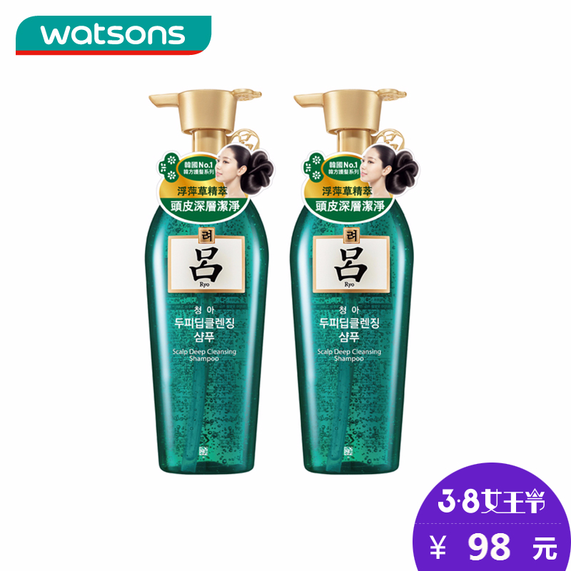 的热门产品【屈臣氏海外】吕韩方修护洗发水400ml油性发质适用(绿)*2件