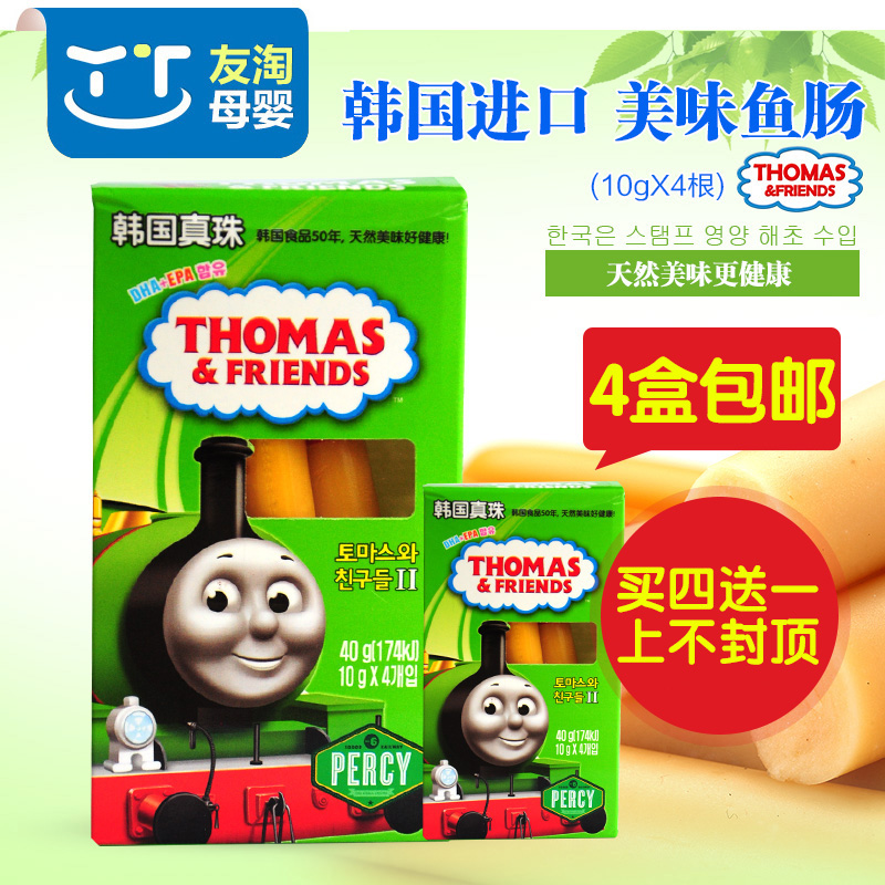 韩国托马斯婴幼儿婴儿鳕鱼肠小火车鱼肠肉肠4根装宝宝辅食零食