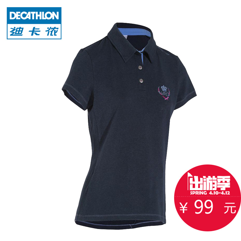 迪卡侬 女式马术短袖POLO衫 棉质透气 设计颜色可搭配 FOUGANZA