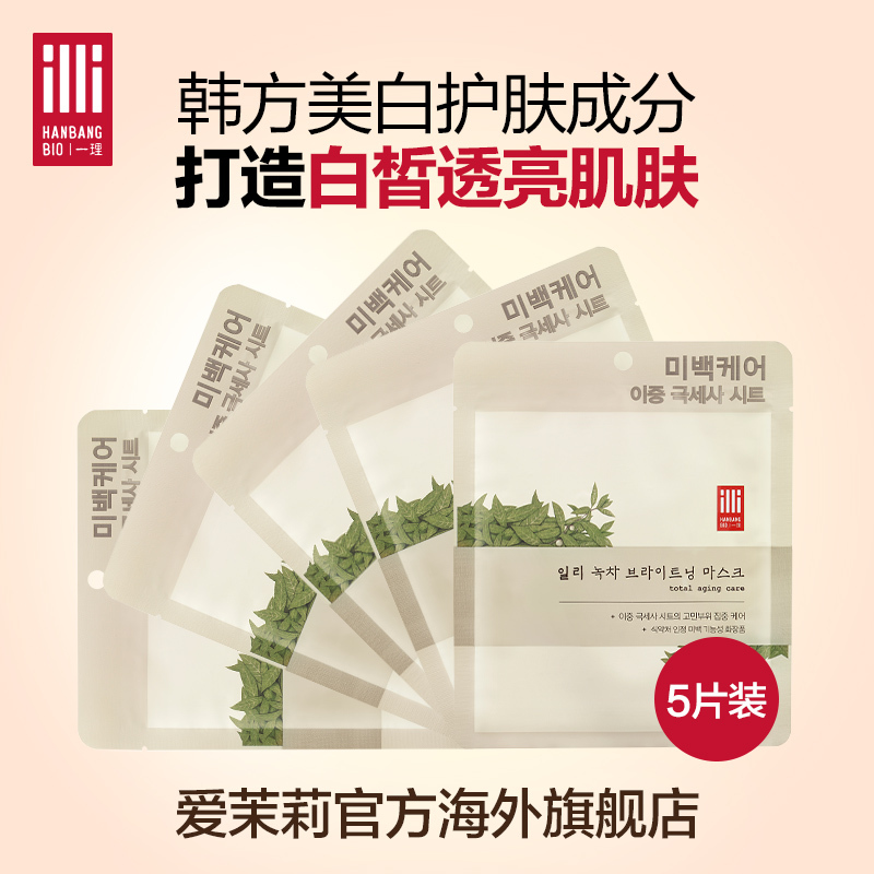 爱茉莉韩国爆款ILLI/一理韩方绿茶美提亮保湿面膜 30g*5片装
