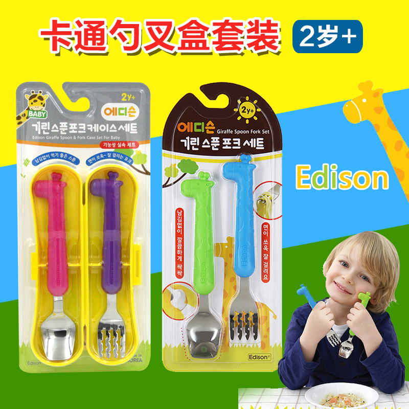 韩国原装EDISON 长颈鹿不锈钢勺叉子儿童餐具套装