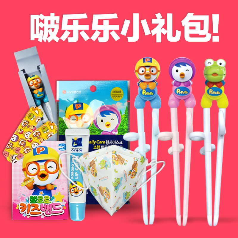 的热门产品韩国进口pororo小企鹅学习锻炼筷子防雾霾口罩润唇膏创可贴礼包