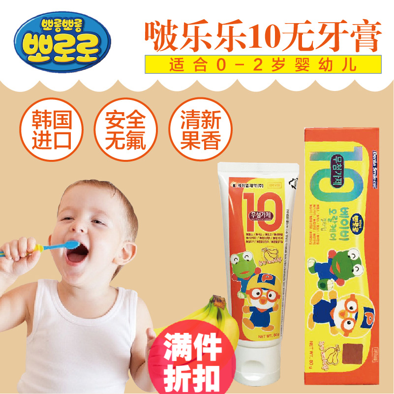 韩国进口pororo啵乐乐无氟可吞咽宝宝牙膏婴幼儿童食用防蛀牙香蕉