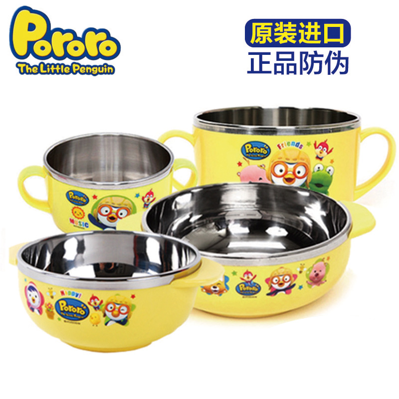 韩国进口pororo啵乐乐儿童餐具套装小企鹅宝宝餐具不锈钢饭盒饭碗
