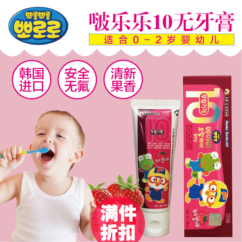 韩国进口pororo啵乐乐无氟可吞咽牙膏儿童牙膏防蛀牙龋齿草莓80g