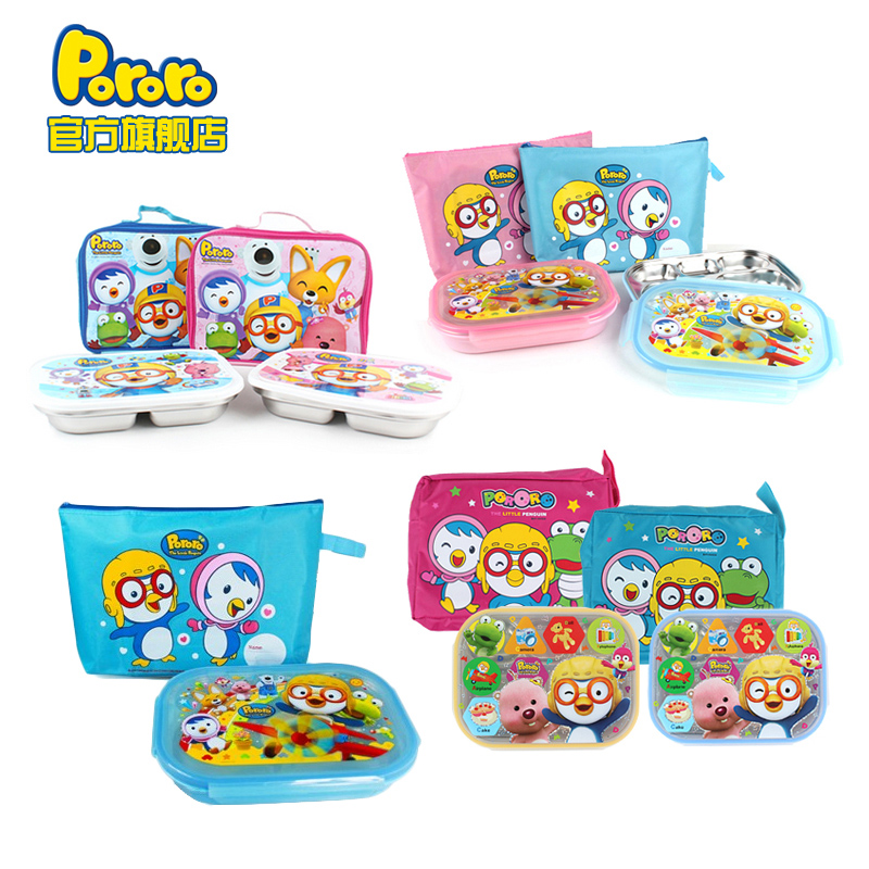 Pororo啵乐乐韩国进口儿童餐具304不锈钢碗宝宝饭盒双排隔断饭盒