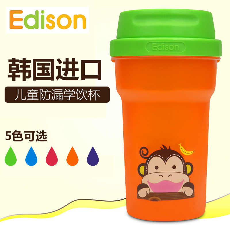 韩国原装儿童防漏双向学饮杯 宝宝水杯训练杯 婴幼儿带盖喝水杯