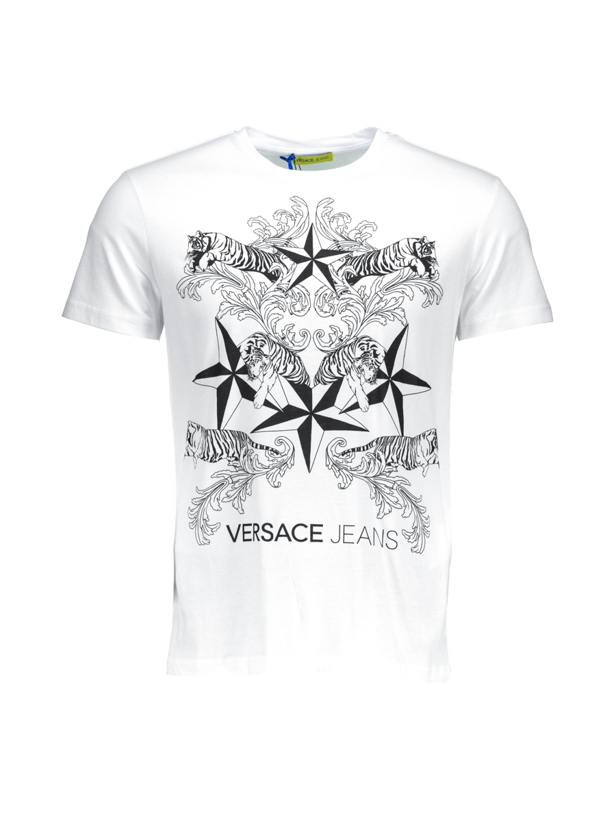 versace jeans 白色圆领动物印花饰短袖T恤
