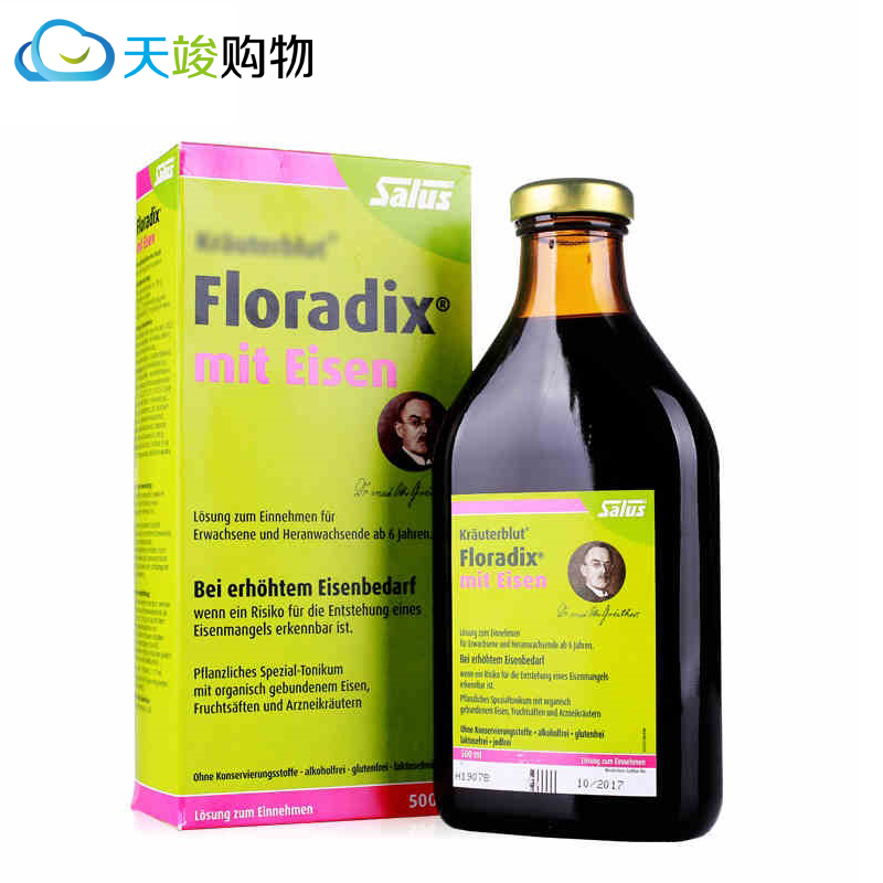 铁元salus德国版Floradix孕妇儿童女性口服液500ml红色