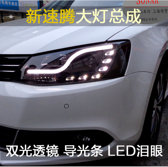 秀山 专用于新速腾大灯 双光透镜 光导LED泪眼 原装位大灯总成