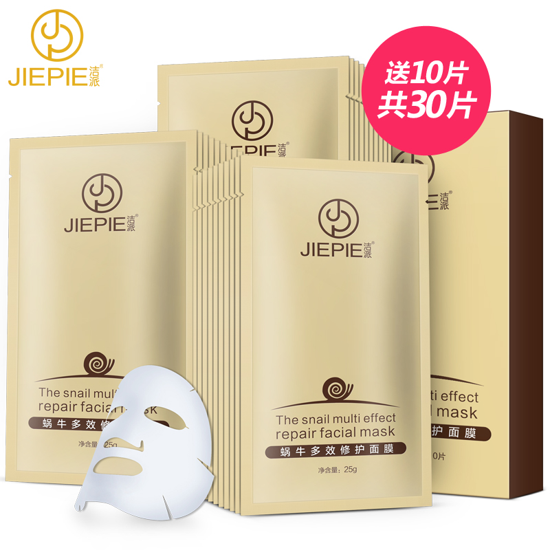 洁派蜗牛原液面膜20片深层补水保湿蚕丝面膜贴提亮肤色正品女士男