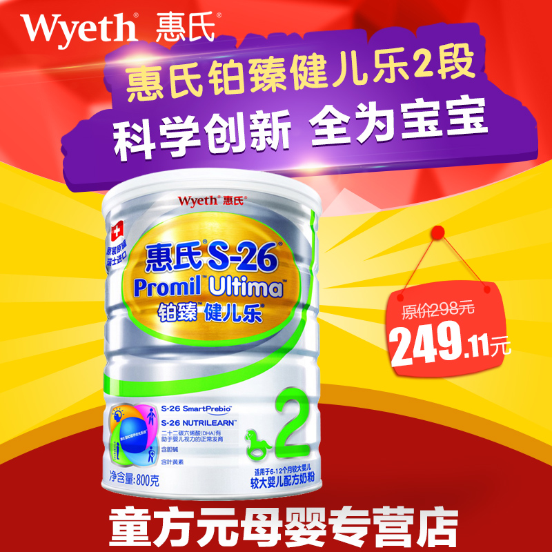 惠氏铂臻健儿乐2段800g 较大婴儿配方奶粉 适用6-12个月宝宝