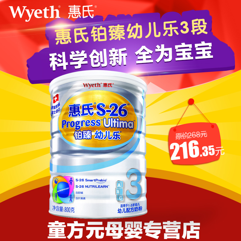 惠氏铂臻幼儿乐3段800g 幼儿配方奶粉 适用于1-3岁幼儿