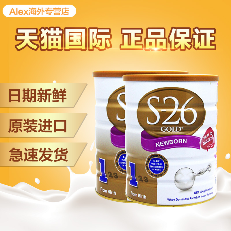 新西兰原装进口 金装惠氏1段S26 婴幼儿奶粉0-6个月900g*2罐装