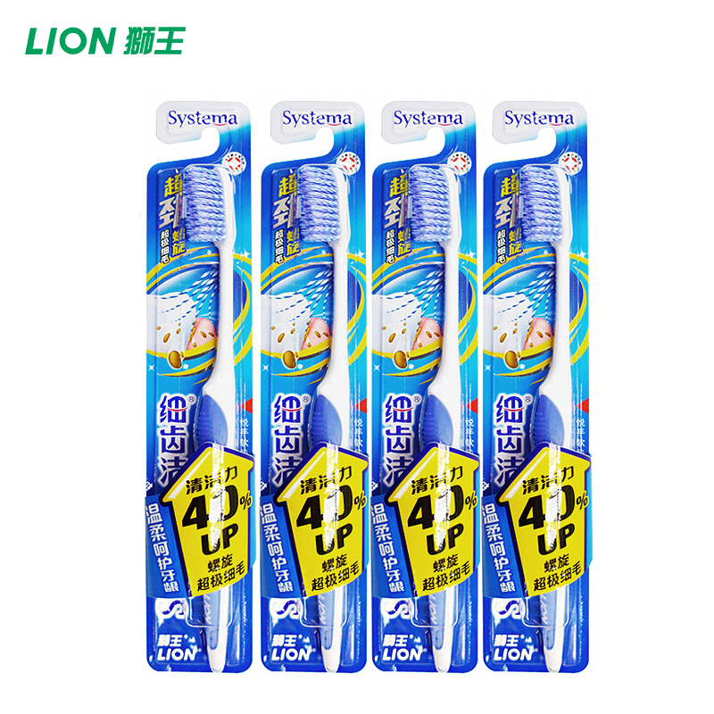 的热门产品LION/狮王 细齿洁超劲螺旋牙刷4支装 进口刷毛超劲清洁
