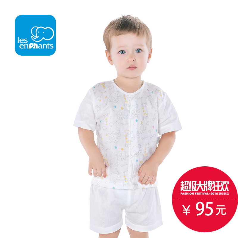 丽婴房婴儿衣服儿童纯棉纱布内衣套装全开襟短袖内衣套装2016夏新