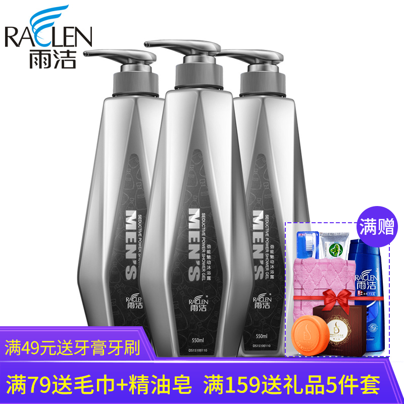 雨洁正品劲能魅动沐浴露男士保湿控油香氛醒体沐浴乳550ml*3套装