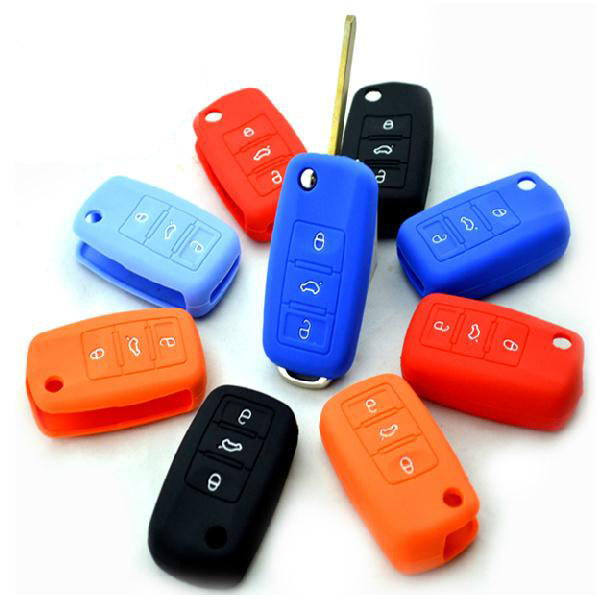 适用于大众朗逸帕萨特迈腾速腾途锐高尔夫硅胶钥匙包带车标钥匙套