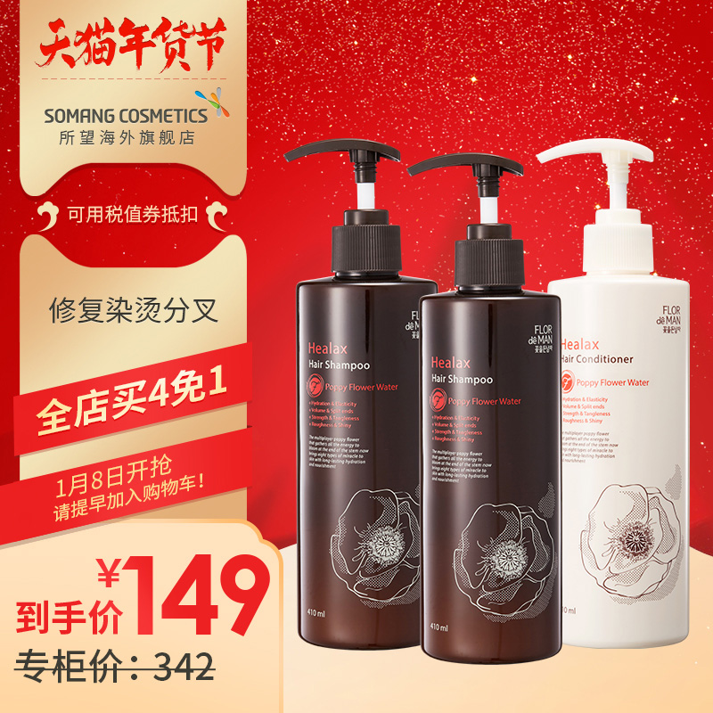 韩国所望罂粟花洗发水露护发素套装1230ml无硅油柔顺烫染修复保税