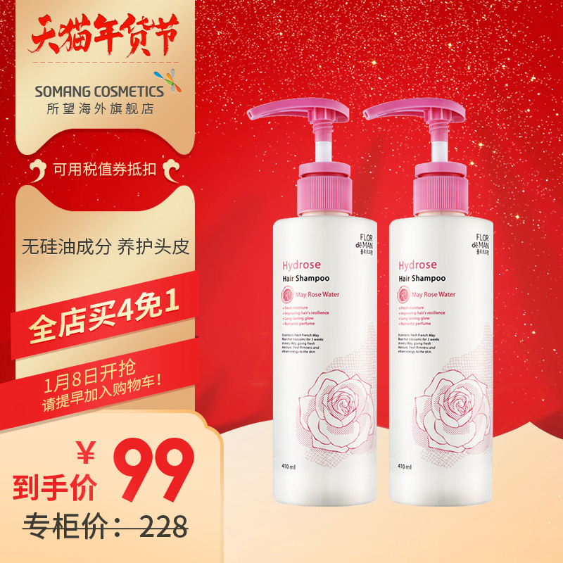 韩国进口所望玫瑰洗发水露410ml*2 无硅油滋养保湿持久留香 保税