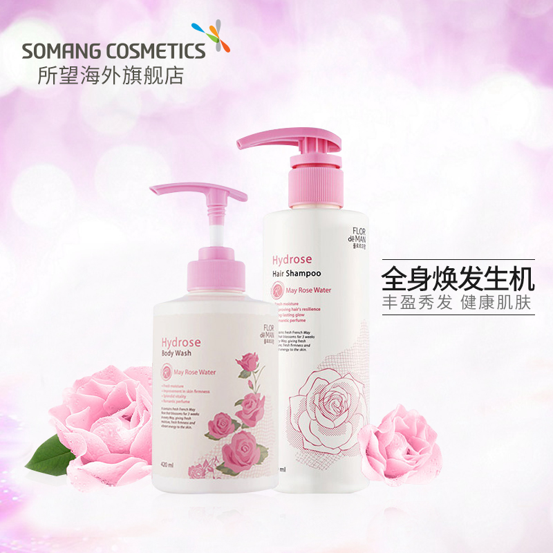 韩国进口所望玫瑰沐浴露洗发水套装无硅油滋润保湿持久留香 保税
