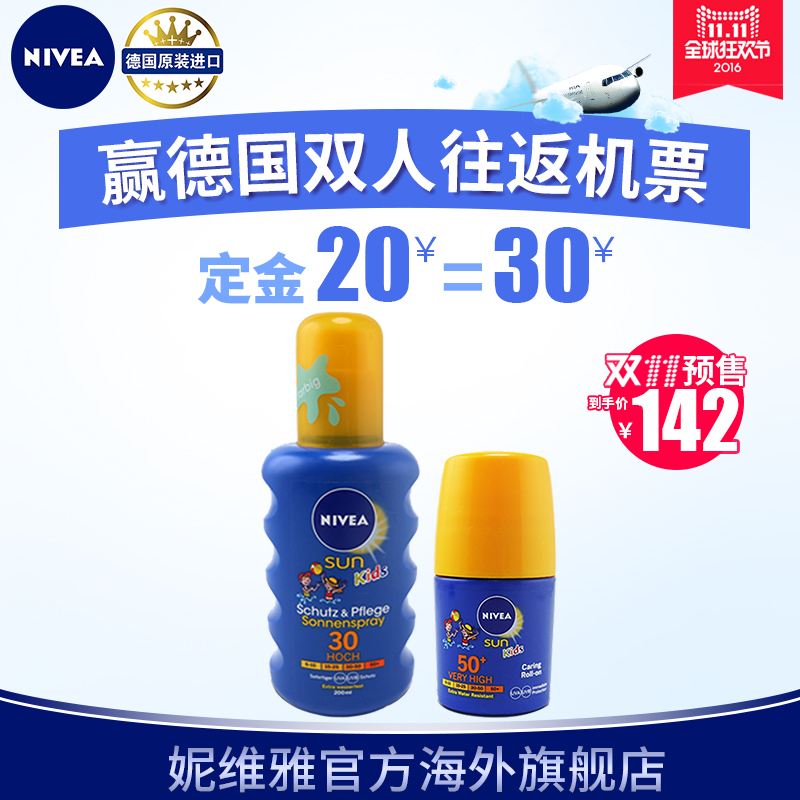 预售 妮维雅儿童防晒霜喷雾spf30 防水防汗防过敏 全身300ml*2