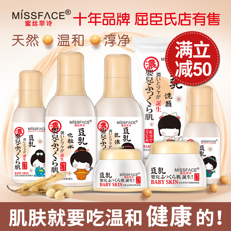Miss face正品豆乳化妆品套装女补水保湿爽肤水乳液洗面奶护肤品