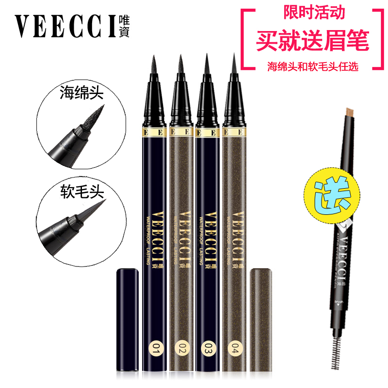 唯资眼线液笔防水不晕染初学者持久内眼线笔细软头海绵黑棕送眉笔