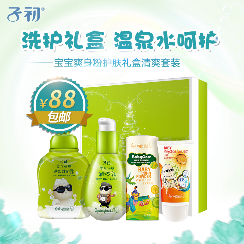子初婴儿洗护用品儿童洗发水沐浴露 宝宝爽身粉护肤礼盒清爽套装